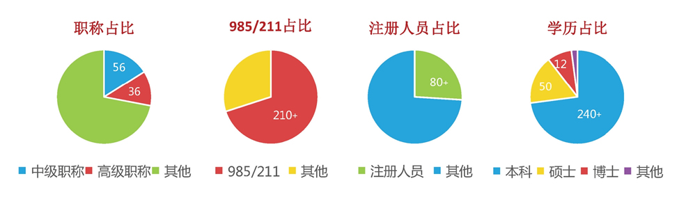 高星集團(tuán)擁有一支職業(yè)化、專業(yè)化、高學(xué)歷的員工隊(duì)伍,現(xiàn)有在編員工300余人,在人員職稱方面高星集團(tuán)擁有高級(jí)職稱人員36人,中級(jí)職稱人員56人;在學(xué)歷方面高星集團(tuán)擁有博士12人,碩士50人,本科240余人,985、211等重點(diǎn)院校畢業(yè)員工占比70%;在注冊(cè)執(zhí)業(yè)人員方面高星集團(tuán)擁有國(guó)家一級(jí)注冊(cè)建筑師、一級(jí)注冊(cè)結(jié)構(gòu)工程師、一級(jí)注冊(cè)建造師、注冊(cè)巖土工程師、注冊(cè)設(shè)備工程師、注冊(cè)電氣工程師、注冊(cè)咨詢工程師、注冊(cè)規(guī)劃師、注冊(cè)造價(jià)工程師、注冊(cè)監(jiān)理工程、注冊(cè)會(huì)計(jì)師、國(guó)家一級(jí)人力資源管理師等共計(jì)80余名。